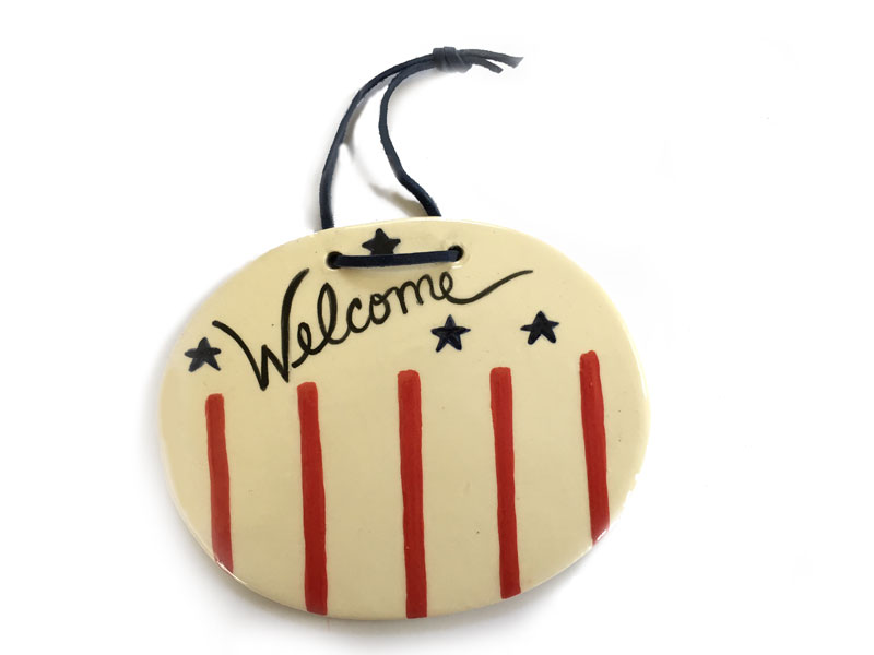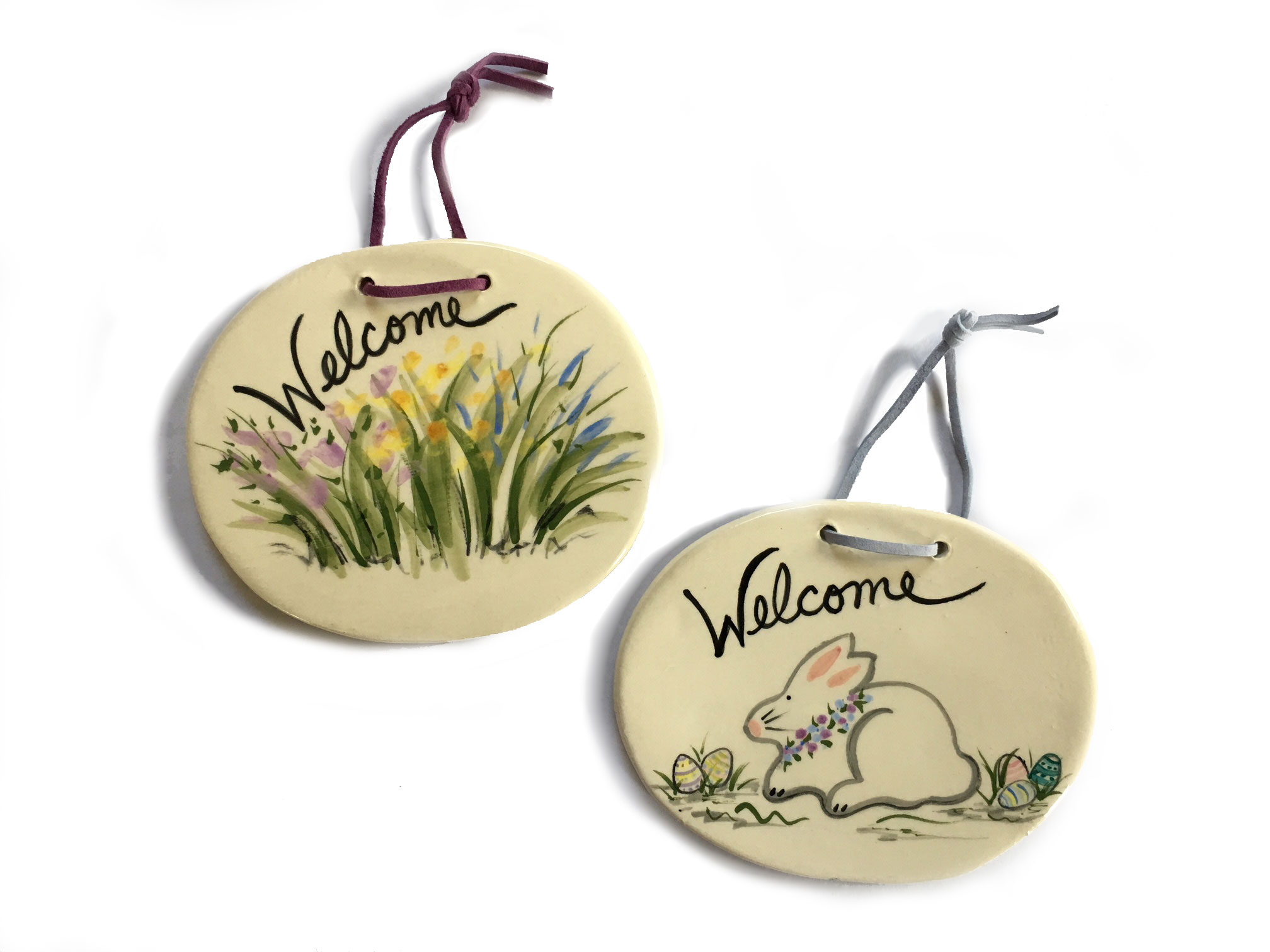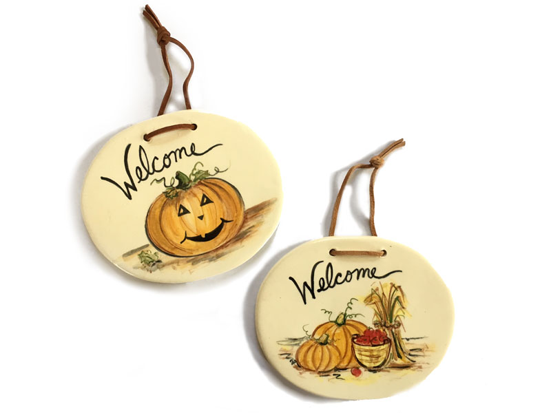 Plaques sizes are approximately 5 1/2in x 4 1/2in with colored suede cord.
