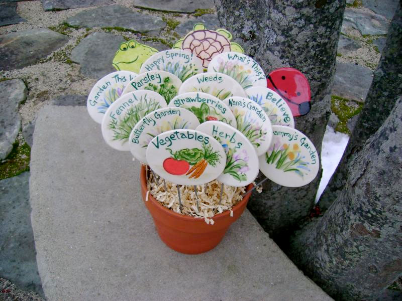 Garden Markers are approximately 3 1/2in x 2 3/4in on 11 1/2in Galvanized Garden Stakes